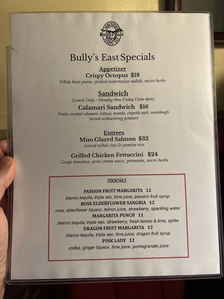 Bully's East Prime Bistro Sports Bar in San Diego offers a unique blend of a sports bar, steakhouse, and seafood restaurant. With a menu that includes breakfast items like the Big Game Breakfast and California Omelet and appetizers like Jumbo Shrimp Cocktail and Calamari Strips, there's something for everyone. The cozy atmosphere and welcoming service make it a great spot for a meal with friends or family. The extensive list of amenities, from wheelchair accessibility to outdoor seating, caters to a diverse range of customers. Customers have praised the friendly service, delicious prime rib dishes, and extensive menu options. With happy hour specials, private dining options, and veteran ownership, Bully's East Prime Bistro Sports Bar stands out as a must-visit destination in San Diego.